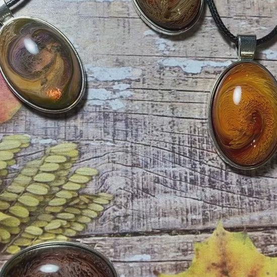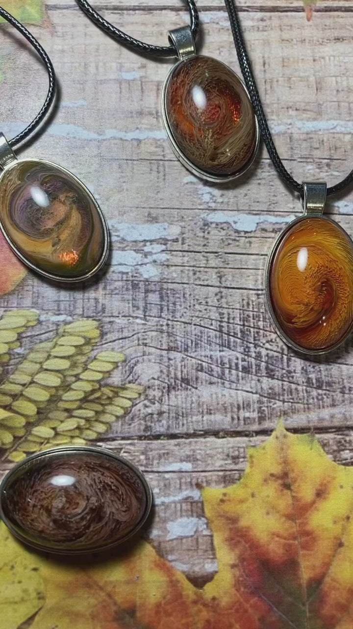Celebrate the beauty of fall with this vibrant Autumn Necklace, featuring an oval pendant handmade from resin. Its mesmerizing design captures the rich, warm colors of the season, making it a truly unique and one-of-a-kind accessory. Perfect as a thoughtful gift for her, this necklace adds a touch of seasonal charm to any outfit, ensuring she stands out with elegance and style.