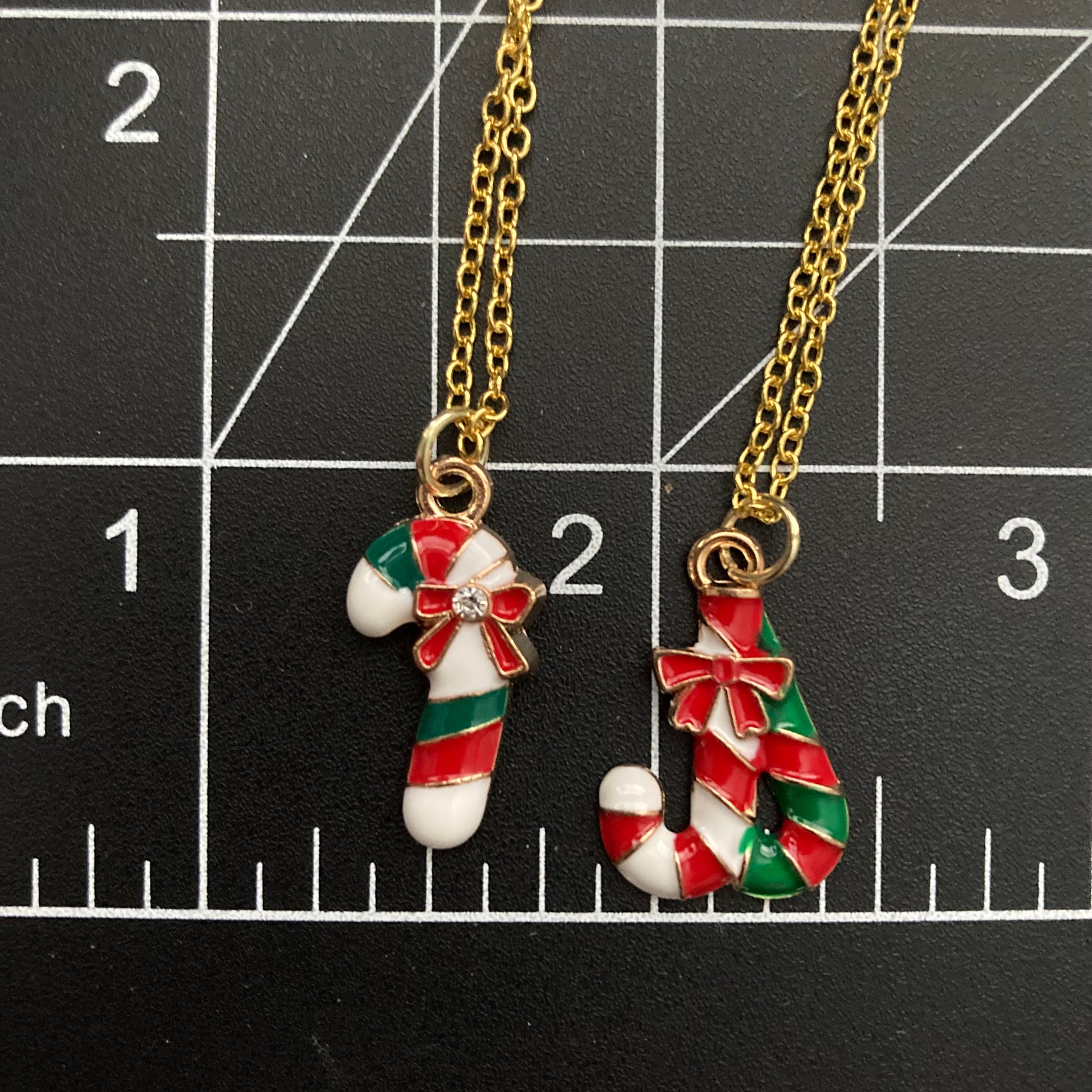Add some cute winter vibes to your holiday spirit with our Festive Holiday Pendant featuring candy canes. Spread cheer and joy with this adorable accessory, perfect for completing any festive outfit. Bring a touch of whimsy to your celebrations this season.
