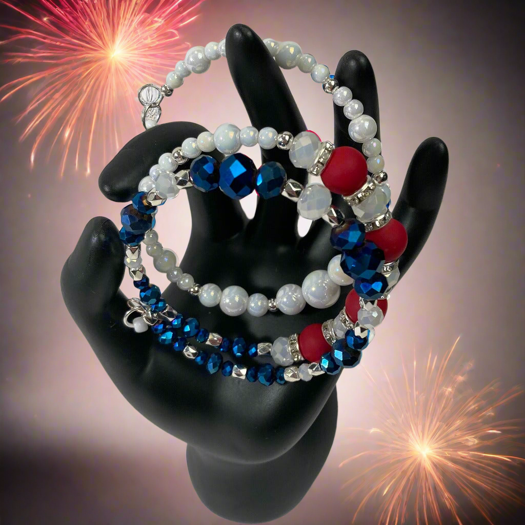 Perfect for any occasion, this bracelet adds a touch of patriotism and convenience with its easy fitting memory wire. Show off your love for your country with this versatile and stylish bracelet.