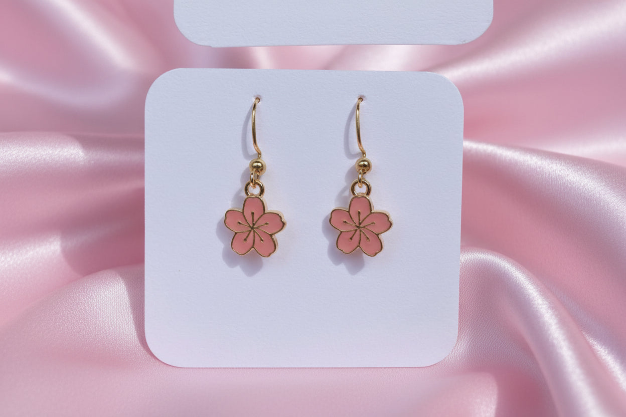 Pink Flowers Charm Earrings
