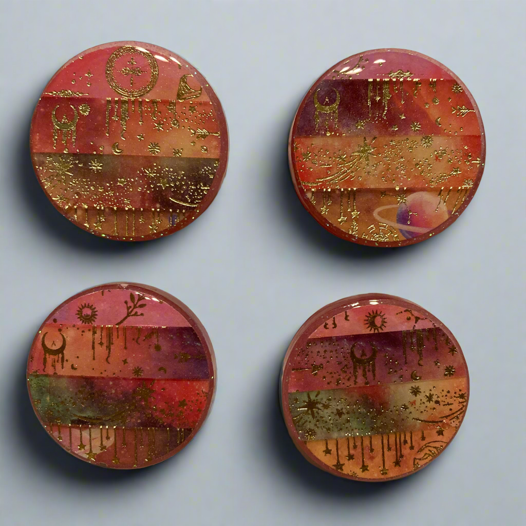 These red galaxy magnets are hand crafted and uniquely designed with a strong magnet. Personalize your file cabinet, locker, or fridge with this one of a kind magnet. Add a touch of style and functionality to your daily routine.
