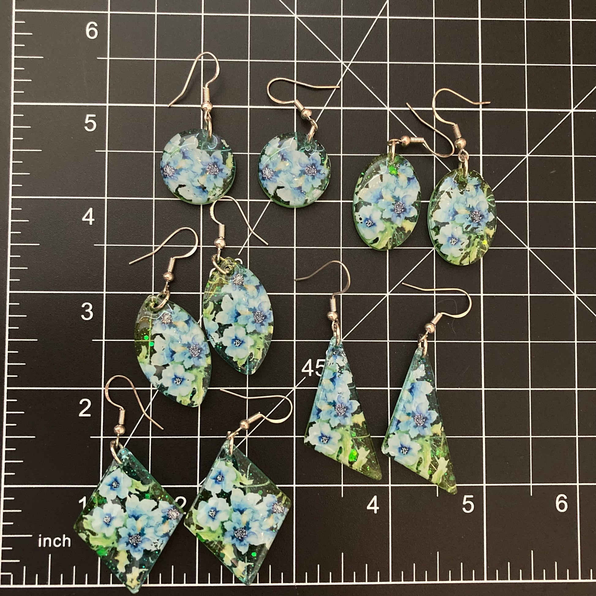 Expertly handcrafted with resin, these stunning earrings feature a vibrant mix of green and blue floral designs. The fresh and unique look is sure to make a statement and would make the perfect gift for any fashion-forward individual. Perfectly combine style and craftsmanship with these gorgeous floral earrings.