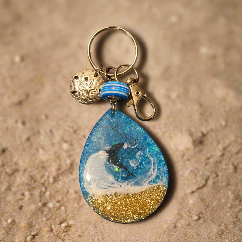 Keychain, purse charm, yin & yang dolphins, summer vibes